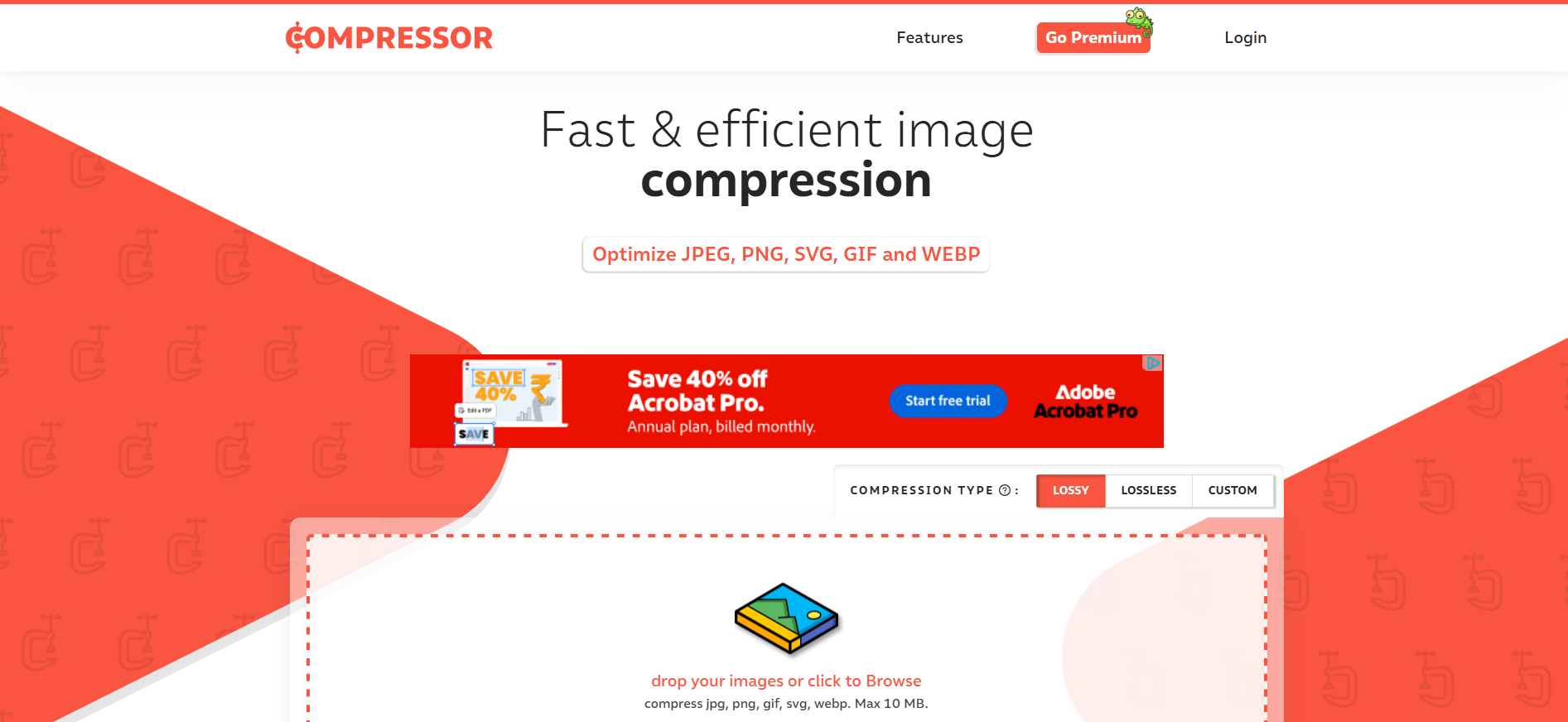 | Compressor.io | Advanced custom compression | JPG, PNG, SVG, GIF, WebP | Yes | Free + Paid | ⭐ 4.7/5 |