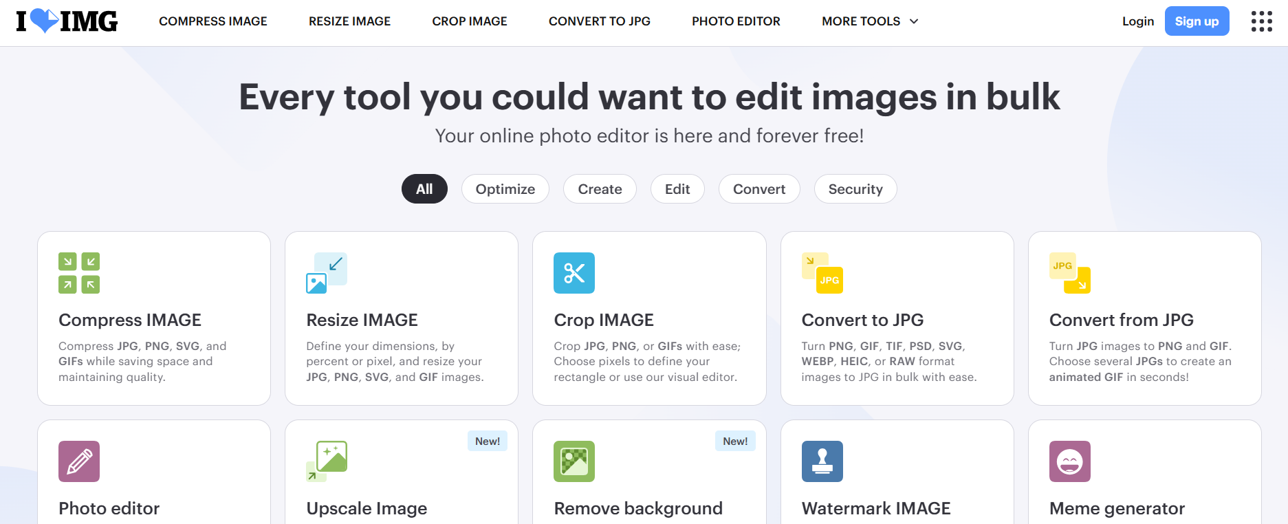 iLoveIMG is built for users who want simplicity without sacrificing functionality. Instead of focusing on advanced compression controls, it offers a streamlined toolkit that covers the most common image tasks in one place. This makes it a practical choice for marketers, content teams, and everyday users who need quick results without technical setup.